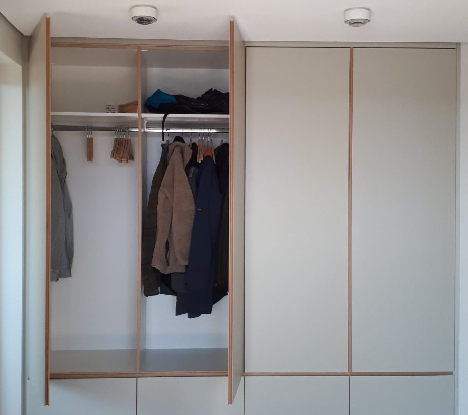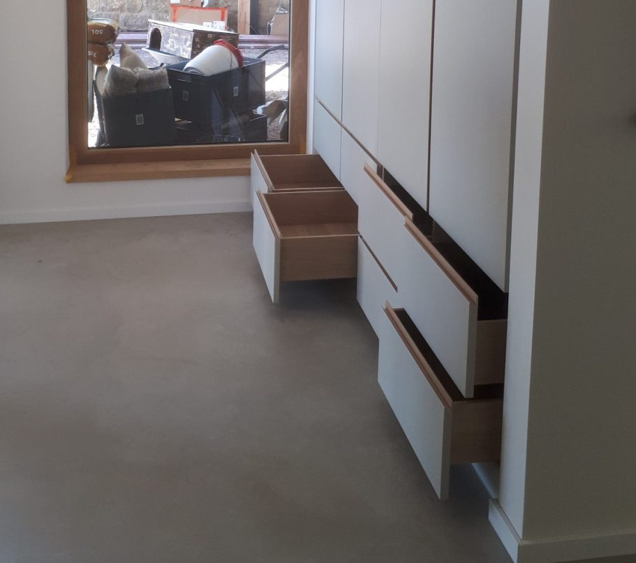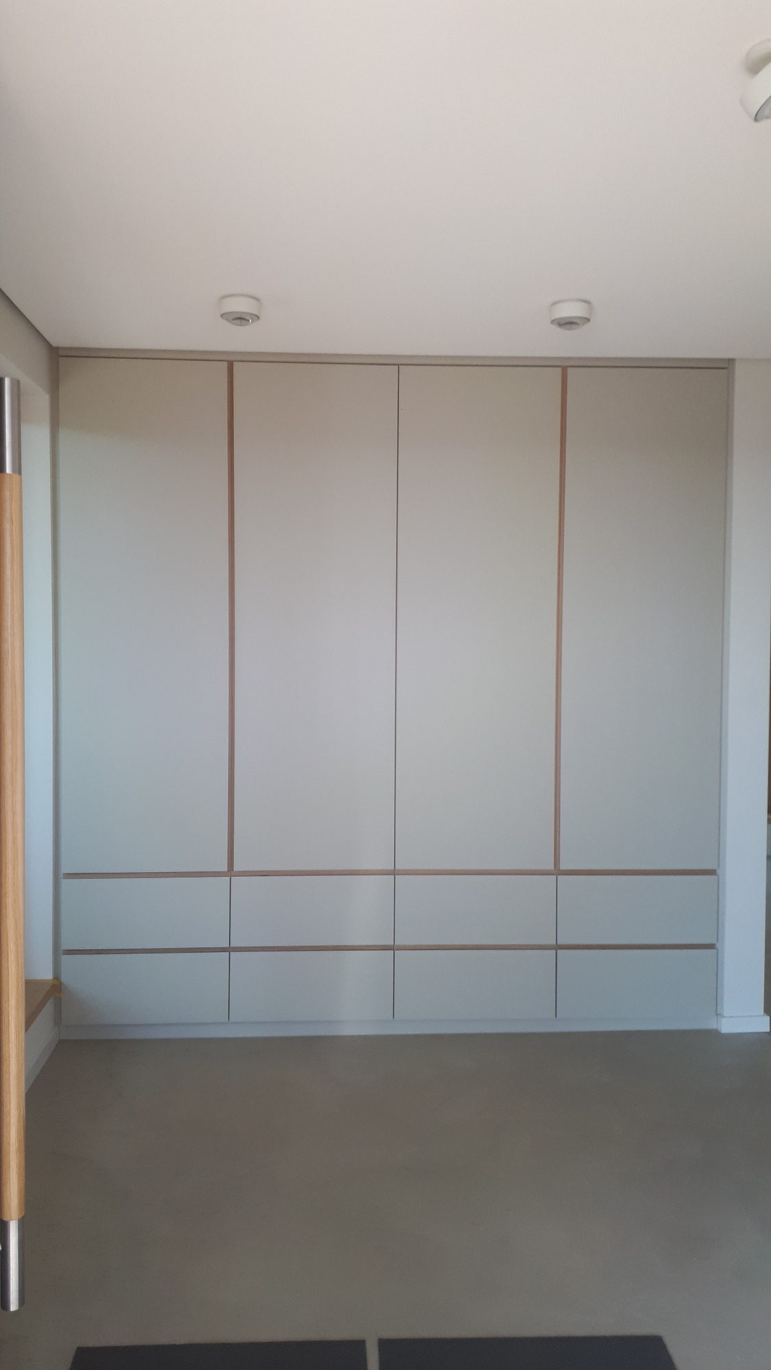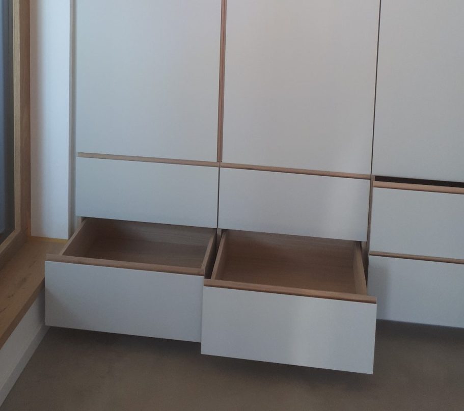 Einbauschrank für Jacken und alles andere Schöne - Schubkästen Rohholz - Griff eingefräst - angenehm griffig - Kleiderstangen - von Wand zu Wand - vom Boden bis zur Decke